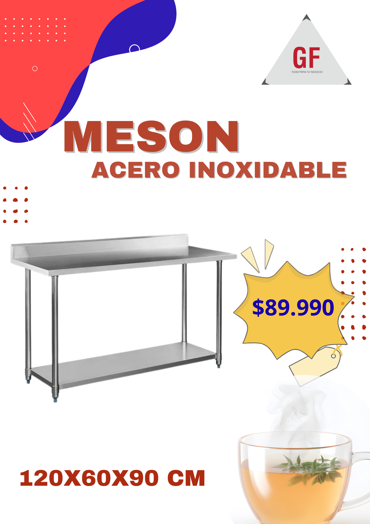 Mesón de centro 150x60x85 cms Acero Inoxidable
